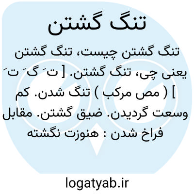 تنگ گشتن. [ ت َ گ َ ت َ ] ( مص مرکب ) تنگ شدن. کم وسعت گردیدن. ضیق گشتن. مقابل فراخ شدن: