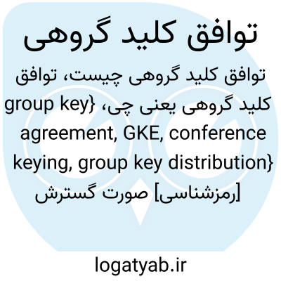{group key agreement, GKE, conference keying, group key distribution} [رمزشناسی] صورت گسترش یافتۀ توافق کلید که در آن کلید مشترک بین چند نهاد به اشتراک گذاشته می شود