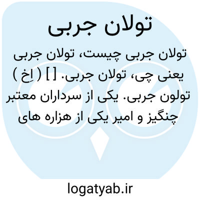 تولان جربی. [ ] ( اِخ ) تولون جربی. یکی از سرداران معتبر چنگیز و امیر یکی از هزاره های لشکر دست راست وی بوده است. و او پسر منکلیک ایجیکه،شوهر مادر چنگیز بود. رجوع به تاریخ جهانگشا ج 2 ص 211 و حاشیه شماره 7 همین صفحه و صفحه بعد شود.