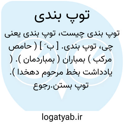 توپ بندی. [ ب َ ] ( حامص مرکب ) بمباران ( بمباردمان ). ( یادداشت بخط مرحوم دهخدا ). توپ بستن.رجوع به همین کلمه و توپ و دیگر ترکیبهای آن شود.