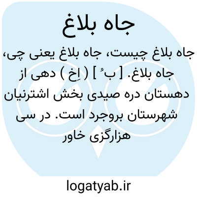 جاه بلاغ. [ ب ُ ] ( اِخ ) دهی از دهستان دره صیدی بخش اشترنیان شهرستان بروجرد است. در سی هزارگزی خاور اشترنیان و شش هزارگزی راه مالرو خشک دره بدره صیدی واقع شده و محلی است کوهستانی و سردسیر و 179 تن سکنه شیعی مذهب داردو زبانشان لری و فارسی است آب مشروب آنجا از قنات وچاه تأمین میشود. محصول آن غلات و شغل اهالی زراعت و راه آن مالرو است. ( فرهنگ جغرافیایی ایران ج 6 ).