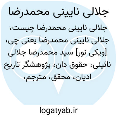 [ویکی نور] سید محمدرضا جلالی نائینی، حقوق دان، پژوهشگر تاریخ ادیان، محقق، مترجم، روزنامه نگار، سیاستمدار و خلاصه یکی از شخصیت های ملی و تأثیرگذار ایران در صد ساله ی اخیر و از رجال خوش نام و خدوم فرهنگی، مطبوعاتی و اجتماعی ایران بود که هفتاد و چند سال از نود و چند سال عمر پربار خود را به خدمت به هم وطنان خود موفق بود.