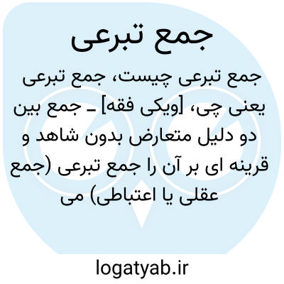 ـــ جمع تبرعی مقابل جمع عرفی عبارت است از رفع تعارض و جمع میان دو دلیل متعارض، بدون وجود قرینه ای عرفی یا لفظی بر آن. ـــ جمع تبرعی، مقابل جمع عرفی بوده و عبارت است از جمع میان دو دلیل متعارض از طریق دست کشیدن از ظاهر هر دو دلیل یا یکی از آن دو، یا به تاویل بردن هر دو یا یکی از آنها بی آن که شاهد عرفی بر آن وجود داشته باشد؛ به بیان دیگر، جمع تبرعی، جمعی است که عقل با دقت و باریک بینی به آن می رسد ولی به درجه ظهور عرفی نمی رسد و عقلای عالم در گفتوگوهای خود چنین بنایی ندارند. این گونه جمع حد و مرزی ندارد بلکه شدیدترین متعارض ها را می توان با دقت عقلی به تاویل برده و بین آنها سازگاری ایجاد نمود.