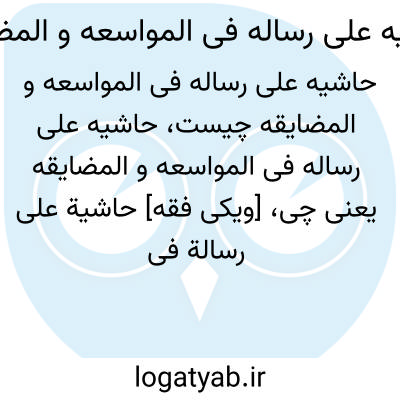 [ویکی نور] حاشیه علی رساله فی المواسعه و المضایقه (مامقانی). این کتاب تعلیقه ای بر کتاب رسالة فی المواسعة و المضایقة شیخ انصاری می باشد. مؤلف در این کتاب به سبکی مجتهدانه و علمی به بررسی و شرح و توضیح نظرات شیخ انصاری و طرح دیدگاه و نظریات خود پرداخته است.