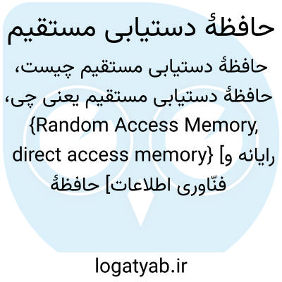 {Random Access Memory, direct access memory} [رایانه و فنّاوری اطلاعات] حافظۀ اصلی رایانه که پردازندۀ مرکزی داده های مورد نیاز خود را مستقیماً از آن دریافت می کند اختـ. حافظۀ مستقیم RAM