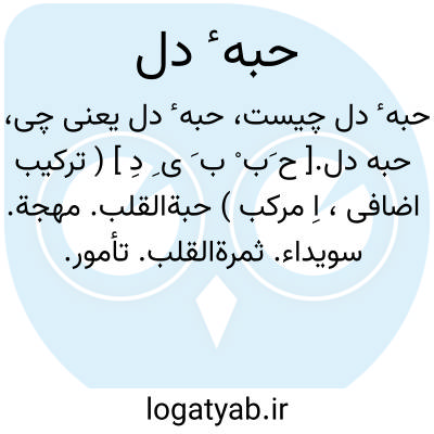 حبه دل.[ ح َب ْ ب َ ی ِ دِ ] ( ترکیب اضافی، اِ مرکب ) حبةالقلب. مهجة. سویداء. ثمرةالقلب. تأمور. دانه دل. نقطه ٔسیاه دل. خون دل. یا آنچه سیاه است در دل. جلجلان القلب. نقطه دل. سیاهی دل، و آن خون بسته سیاهی باشد در درون دل. ( دستور اللغه ادیب نطنزی ):