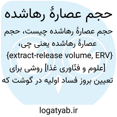 {extract-release volume, ERV} [علوم و فنّاوری غذا] روشی برای تعیین بروز فساد اولیه در گوشت که در آن نسبت حجم مایع خارج شده از گوشت به کل حجم آن اندازه گیری می شود