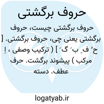 حروف برگشتی. [ ح ُ ف ِ ب َ گ َ ] ( ترکیب وصفی، اِ مرکب ) پیشوند برگشت. حرف عطف. دسته اول از حروف بند و بست است. رجوع به دستور جامع فرخ ص 805 و حروف عطف شود.