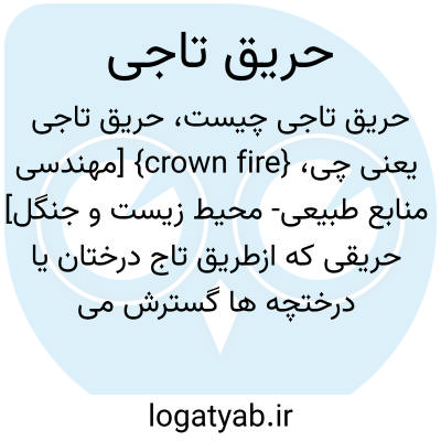 {crown fire} [مهندسی منابع طبیعی- محیط زیست و جنگل] حریقی که ازطریق تاج درختان یا درختچه ها گسترش می یابد