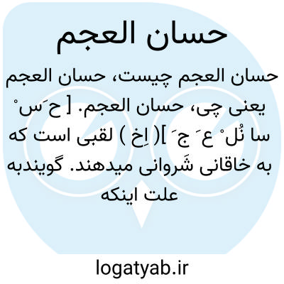 حسان العجم. [ ح َس ْ سا نُل ْ ع َ ج َ ]( اِخ ) لقبی است که به خاقانی شَروانی میدهند. گویندبه علت اینکه در مدیحه حضرت رسول ( ص ) مانند حسان بن ثابت قصاید بسیار دارد. بدین لقب خوانده شد. خود درتحفةالعراقین آنجا که ذکر پدر خویش میکند میگوید: