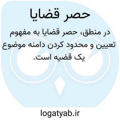 حصر قضایا. [ ح َ رِ ق َ] ( ترکیب اضافی، اِ مرکب ) ( اصطلاح منطق ) مقابل اهمال آن. موضوع قضیه حملی یا جزوی شخصی بود، یعنی قابل وقوع شرکت نبود یا بود. و بر تقدیر اول، قضیه را مخصوصه و شخصیه خوانند و آن یا موجبه بود، مانند: زید کاتب است. یا سالبه بود، مانند: زید کاتب نیست. و اگرقابل شرکت بود یا کمیت محکوم علیه مذکور بود یا نبود. اگر مذکور نبود قضیه را مهمله خوانند. موجبه چنانکه: مردم کاتبست. و سالبه چنانکه: مردم کاتب نیست، چه در این دو قضیه مذکور نیست که همه مردم یا بعضی. و اگر کمیت مذکور بود قضیه را محصوره خوانند. و آن دو گونه بود: یا حکم بر همه اشخاص موضوع بود یا بر بعضی. و اول را کلیه خوانند، و دوم را جزویه. کلیه موجبه چنانکه: همه مردم کاتبند، یا هر مردی کاتبست. و کلیه سالبه، چنانکه: هیچ مردم کاتب نیست. و جزویه موجبه، چنانکه: بعضی مردمان کاتب اند. و جزویه سالبه، چنانکه: بعضی مردمان کاتب نیستند. یا همه مردمان کاتب نیستند، یا نه هر مردمی کاتب است. و لفظ همه و بعضی را که مقدار حکم تعیین کنند سور خوانند. و بعضی محصوره را «مسوره » خوانند. و به تازی سور در ایجاب کلی لفظ کل باشد. و در سلب کلی «لا شی ٔ» و «لا واحد». و در ایجاب جزوی بعض. و در سلب جزوی لیس بعض. و برعکس، یعنی سور بر سلب مقدم، و لیس کل، و این هر سه در لزوم یکی است، و اگرچه در دلالت مختلف است، چه لیس بعض سلب جزویست، و تقدیم سور همان است، اما در وی ایهام عدول باشد. و لیس کل، سلب عموم است. و همچنین در پارسی، همه مردم کاتب نیستند. و فرق بود میان سلب عموم و میان عموم سلب. اما عموم سلب مقتضاء صیغت سالبه کلیه باشد، و اما سلب عموم دلالت کند بر آنکه ایجاب کاتب عام نیست بر همه مردم. پس ممکن بود که سلبش عام بود همه را، و ممکن بود که خاص بود به بهری، و در هر دو حال سلب بعض صادق بود. و بر سبیل قطع معلوم بود. پس به یقین کتابت از بهری مردمان مسلوب بود، ودر باقی شک بود. و مفهوم قضیه آنقدر باشد که به قطعمعلوم شود، نه آنچه بر سبیل شک و ایهام مظنون باشد.و همچنین چون گویند: بعضی مردمان ناطق اند ممکن بود که دیگر بعض نیز ناطق باشند، و ممکن بود که نباشند. و هر چند از تخصیص بعض در لفظ ظن افتد که دیگر بعض بخلاف آن باشد، و اگر نه بعضی را تخصیص نکردندی، اما به این ظن التفات نبود، و حکم بر همانقدر بود که از لفظ بر سبیل قطع معلوم باشد. پس جزوی از هر بابی در صدق عامتر از کلی بود، چه با صدق کلی جزوی نیز واجب الصدق بود، و با صدق جزوی کلی واجب الصدق نبود، و در کذب به عکس. و مکان سور بطبع نزدیک موضوع بود، چنانکه مکان رابطه نزدیک محمول باشد، چه سور تعیین مقدار محکوم علیه از موضوع فایده میدهد، و چون در معنی محمول و موضوع حقیقی و رابطه چیزی زیادت نمیشود، قضیه را بسبب سور رباعی نخوانند. و فرق است میان کلی و میان کل واحد، چه کلی آن معنی است که قابل شرکت بود، و وقوعش بر یک یک شخص از اشخاص که تحت او باشد بر سبیل حمل جایز بود، کل واحد یک یک از اشخاص آن معنی است بر وجهی که هیچ شخص از آن خارج نبود. و شبهت نیست در آنکه یک یک شخص قابل شرکت نبود، و حملش بر غیر جایز نبود. پس کلی دیگر است و کل واحد دیگر. و مراد از موضوع قضیه کلی در محصورات کل واحد است. پس چون گوئیم: کل انسان کاتب. مفهومش آن بود که کل واحد واحد من اشخاص الناس کاتب، و همچنین در جزوی مراد آن بود که بعضی از آن اشخاص نه بعضی از کلی. و به این سبب نشاید که گویند: کل انسان نوع، و شاید که گویند: کل انسان شخص. و اما در مهمله موضوع کلی باشد، اما از آن روی که شایستگی عموم و خصوص دارد، نه از آن روی که عام بودیا خاص. پس حکم در مهمله نه بر حصری کلی دلالت کند بمطابقت و نه بر حصری جزوی، اما بدلالت عقلی معلوم شودکه چون حکم بر این صفت بود، محتمل باشد که بر همه اشخاص بود و محتمل بود که بر بعضی اشخاص بود چه وقوع آن طبیعت بر هر دو یکسان است، اما محتمل نبود که برهیچ شخص نباشد، چه این معنی منافی اصل حکم عقل باشد، و وقوع بر همه مستلزم وقوع بر بعض بود، و این حکم منعکس نباشد، پس وقوع بر بعض بقطع معلوم باشد