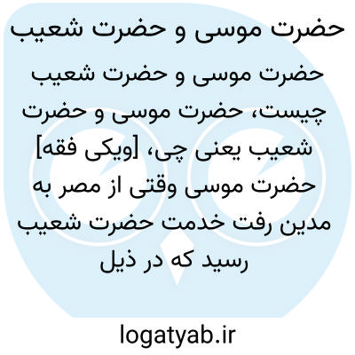 [ویکی فقه] حضرت موسی وقتی از مصر به مدین رفت خدمت حضرت شعیب رسید که در ذیل داستانش ذکر می شود.