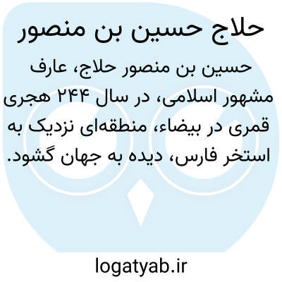 [ویکی نور] «ابوعبدالله حسین بن منصور حلاج» عارف و صوفی مشهور عالم اسلامی است که در سال 244ق در بیضاء نزدیک استخر فارس، متولد شد. البته برخی اقوال دیگر نیز درباره محل ولادتش نقل شده است: همچون: نیشابور، مرو، طالقان، ری و مناطق جبال. او در کودکی به همراه پدر به واسط رفت و در سن شانزده سالگی، به حلقه شاگردی نخستین پیرو مرشد خویش، یعنی «سهل بن عبدالله تستری» (م 283ق) در آمد و دو سال در خدمت وی بود و پس از تبعید او به بصره، «حلاّج» نیز با وی به بصره رفت. «حلاج» در حدود سال 262ق از بصره به بغداد رفت و در آن جا مدت هجده ماه محضر «عمرو مکی» (م 297ق) را درک کرد. و در این شهر بود که با ام الحسین، دختر یکی از صوفیان به نام «ابویعقوب اقطع» ازدواج کرد. حلاج در سراسر زندگی، به همین یک زن بسنده کرد و ظاهراً از او صاحب پسر و یک دختر شد. ازدواج حلاّج با دختر «ابویعقوب اقطع» به مذاق استاد وی (عمرو مکّی) خوش نیامد! از این رو حلاج ناگزیر او را ترک گفت و به شاگردی «ابوالقاسم جنید بغدادی» در آمد.