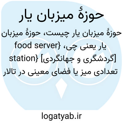 {food server station} [گردشگری و جهانگردی] تعدادی میز یا فضای معینی در تالار غذاخوری که یک میزبان یار مسئول دارد