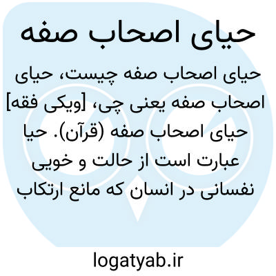 [ویکی فقه] حیای اصحاب صفه (قرآن). حیا عبارت است از حالت و خویی نفسانی در انسان که مانع ارتکاب اعمال زشت می شود. از جمله مردم با حیا و دارای عزت نفس اصحاب صفه بودند.