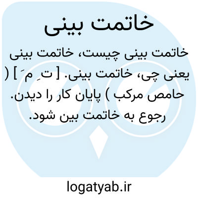 خاتمت بینی. [ ت ِ م َ ] ( حامص مرکب ) پایان کار را دیدن. رجوع به خاتمت بین شود.