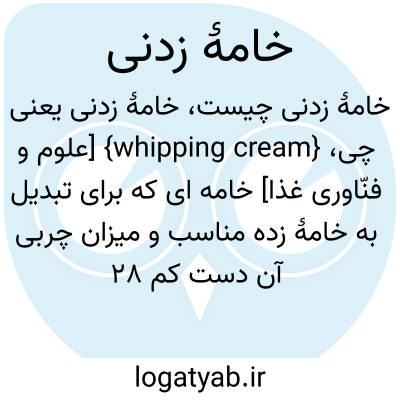 {whipping cream} [علوم و فنّاوری غذا] خامه ای که برای تبدیل به خامۀ زده مناسب و میزان چربی آن دست کم 28 درصد باشد