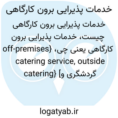 {off-premises catering service, outside catering} [گردشگری و جهانگردی] نوعی پذیرایی که در آن تدارک گر تمام عملیات و خدمات اجرایی مانند تهیۀ غذا و نوشیدنی و پذیرایی و احتمالاً چیدمان و تزیینات و سرگرمی و نظایر آن را در مکانی خارج از محل کار انجام می دهد