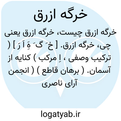خرگه ازرق. [ خ َ گ َ هَِ اَ رَ ] ( ترکیب وصفی، اِ مرکب ) کنایه از آسمان. ( برهان قاطع ) ( انجمن آرای ناصری )( آنندراج ). رجوع به خرگاه ازرق درین لغت نامه شود.