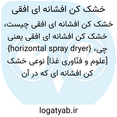 {horizontal spray dryer} [علوم و فنّاوری غذا] نوعی خشک کن افشانه ای که در آن افشانش مواد غذایی تغلیظ شده به صورت افقی است