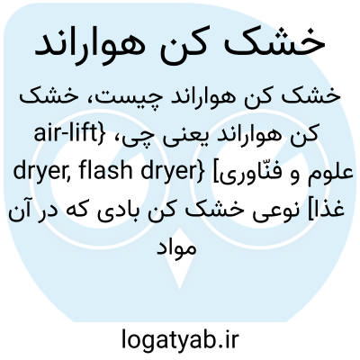 {air-lift dryer, flash dryer} [علوم و فنّاوری غذا] نوعی خشک کن بادی که در آن مواد غذایی در جریان هوای گرم در داخل ستونی عمودی معلق می شوند و پس از خشک شدن به مخزن دستگاه منتقل می شوند