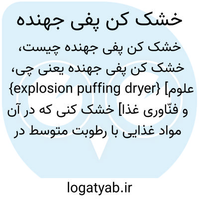 {explosion puffing dryer} [علوم و فنّاوری غذا] خشک کنی که در آن مواد غذایی با رطوبت متوسط در محفظه ای تحت فشار و دمای زیاد قرار می گیرند و سپس وارد محفظه ای با فشار کم می شوند و براثر تبخیر سریع آب، مواد غذایی از هم پاشیده و به صورت قطعات ریز متخلخل خشک می شوند