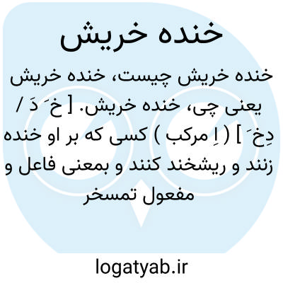 خنده خریش. [ خ َ دَ / دِخ َ ] ( اِ مرکب ) کسی که بر او خنده زنند و ریشخند کنند و بمعنی فاعل و مفعول تمسخر هر دو آمده و آن را خنده ریش نیز گویند و ریشخند بهمین معنی است. ( از انجمن آرای ناصری ) ( از آنندراج ). مضحکه. مسخره. مایه سخریه. آلت استهزاء. ( یادداشت بخط مؤلف ):