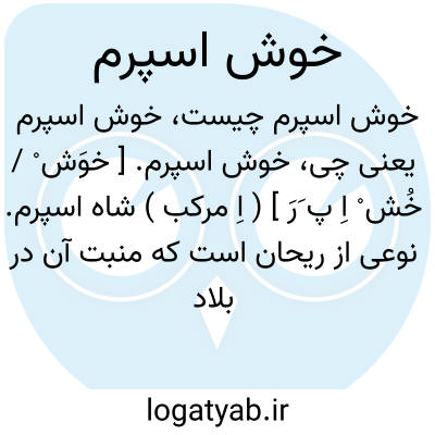 خوش اسپرم. [ خوَش ْ / خُش ْ اِ پ َرَ ] ( اِ مرکب ) شاه اسپرم. نوعی از ریحان است که منبت آن در بلاد عرب می باشد. ( برهان قاطع ) ( ناظم الاطباء ). خشسبرم. ( یادداشت مؤلف ). رجوع به شاه اسپرم شود.
