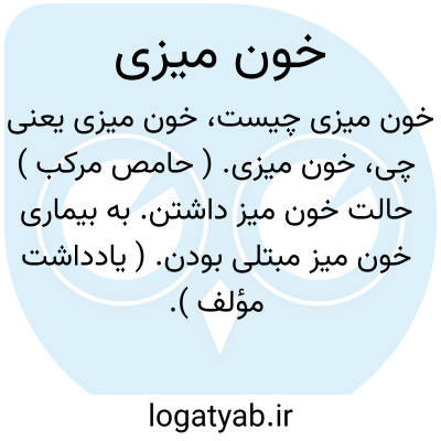 خون میزی. ( حامص مرکب ) حالت خون میز داشتن. به بیماری خون میز مبتلی بودن. ( یادداشت مؤلف ).