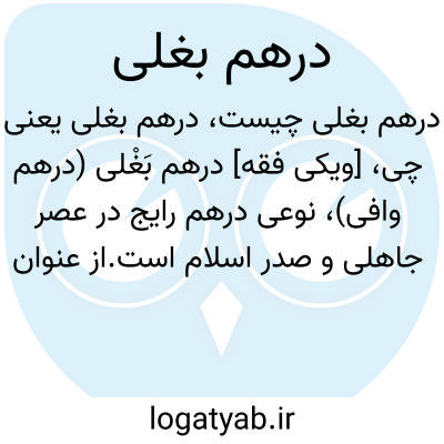 [ویکی فقه] درهم بَغْلی (درهم وافی)، نوعی درهم رایج در عصر جاهلی و صدر اسلام است.از عنوان درهم بغلی، به مناسبت در باب طهارت نام برده اند.