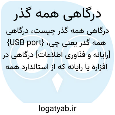 {USB port} [رایانه و فنّاوری اطلاعات] درگاهی در افزاره یا رایانه که از استاندارد همه گذر برای انتقال داده ها استفاده می کند