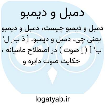 دمبل و دیمبو. [ دَ ب ِ ل ُ ب ُ ] ( اِ صوت ) در اصطلاح عامیانه، حکایت صوت دایره و دنبک. از اتباع است به معنی تنبک زدن و برجستن. ( از لغت محی شوشتر ): دمبل و دیمبو نقاره، عروس تنبان نداره داماد رفته بیاره، ساق و سلامت نیاره. ( از ترانه های عامیانه ).