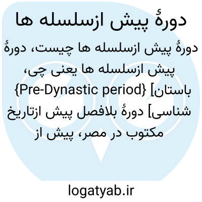 {Pre-Dynastic period} [باستان شناسی] دورۀ بلافصل پیش ازتاریخ مکتوب در مصر، پیش از تشکیل حکومت متحد در سال 3100 ق.م متـ. مصر پیش ازسلسله ها Pre-Dynastic Egypt پیش ازسلسله ها Predynastic