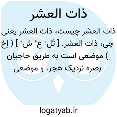 ذات العشر. [ تُل ْ ع ُ ش َ ] ( اِخ ) موضعی است به طریق حاجیان بصره نزدیک هجر. و موضعی نزدیک طنب و ماریة || ذات العشیرةَ. رجوع به ذات العشیرةَ شود.