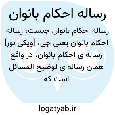 [ویکی نور] رساله ی احکام بانوان، در واقع همان رساله ی توضیح المسائل است که بخشی از فتاوای آیت الله شیخ جواد تبریزی را در مورد احکام و مسائل مربوط به بانوان در بر دارد. این کتاب، به زبان فارسی تدوین گردیده است.