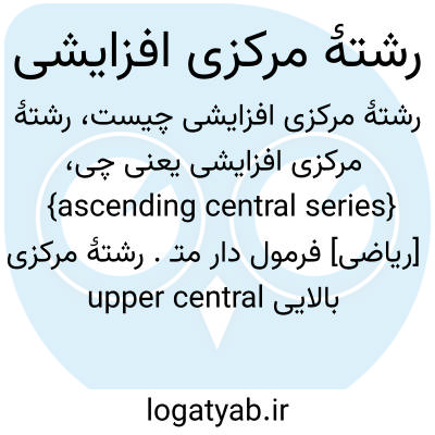 {ascending central series} [ریاضی] فرمول دار متـ. رشتۀ مرکزی بالایی upper central series