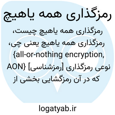 {all-or-nothing encryption, AON} [رمزشناسی] نوعی رمزگذاری که در آن رمزگشایی بخشی از پیام بدون رمزگشایی کل آن ممکن نیست