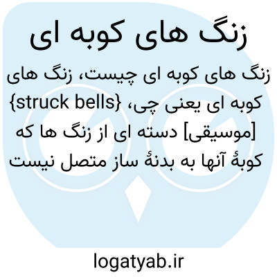 {struck bells} [موسیقی] دسته ای از زنگ ها که کوبۀ آنها به بدنۀ ساز متصل نیست