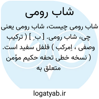 شاب رومی. [ ب ِ ] ( ترکیب وصفی، اِمرکب ) فلفل سفید است. ( نسخه خطی تحفه حکیم مؤمن متعلق به کتابخانه مؤلف ) ( اختیارات بدیعی ) ( فهرست مخزن الادویه ). فلفل سفید را گویند و آن بزرگتر از فلفل سیاه است و بهترین وی آن است که بزردی مایل باشد. گرم و خشک است و در سیم و چهارم. ( برهان قاطع ).