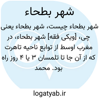 [ویکی فقه] شهر بطحاء، در مغرب اوسط از توابع ناحیه تاهرت که از آن جا تا تلمسان ۳ یا ۴ روز راه بود.