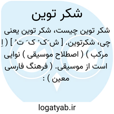 شکرتوین. [ ش َک ْ ک َ ت ُ ] ( اِ مرکب ) ( اصطلاح موسیقی ) نوایی است از موسیقی. ( فرهنگ فارسی معین ):
