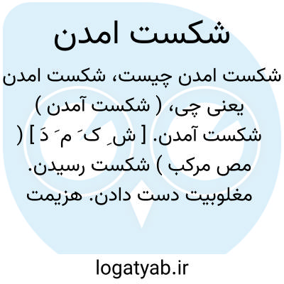 ( شکست آمدن ) شکست آمدن. [ ش ِ ک َ م َ دَ ] ( مص مرکب ) شکست رسیدن. مغلوبیت دست دادن. هزیمت یافتن. ( یادداشت مؤلف ):
