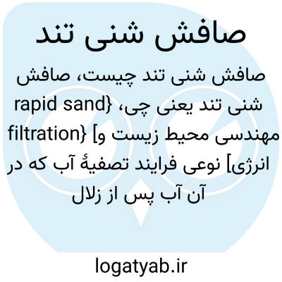 {rapid sand filtration} [مهندسی محیط زیست و انرژی] نوعی فرایند تصفیۀ آب که در آن آب پس از زلال سازی از بستری شنی عبور داده می شود تا بقایای ذرات آن گرفته شود