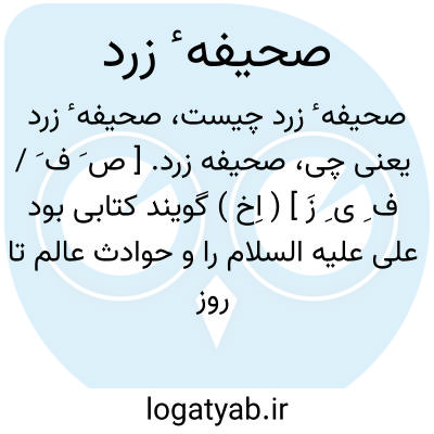 صحیفه زرد. [ ص َ ف َ / ف ِ ی ِ زَ ] ( اِخ ) گویند کتابی بود علی علیه السلام را و حوادث عالم تا روز قیامت در آن نوشته بود و آن کتاب بمحمدبن حنفیه و از او به ابی هاشم فرزند وی رسید و او چون بحمیمه نزد محمدبن علی بن عبداﷲبن عباس رسید، آن صحیفه بوی تسلیم کرد و خود همانروز درگذشت و آن را صحیفه علویه گفتندی. رجوع به همین لغت نامه ذیل کلمه ابوهاشم عبداﷲبن محمدبن الحنفیه شود.