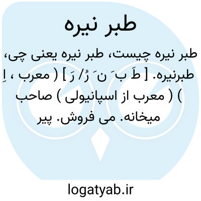 طبرنیره. [ طَ ب َ ن َ رُ/ رَ ] ( معرب، اِ ) ( معرب از اسپانیولی ) صاحب میخانه. می فروش. پیر میکده. پیر خرابات. ( دزی ج 2 ص 21 ).