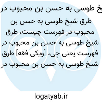 [ویکی فقه] طرق شیخ طوسی به حسن بن محبوب در فهرست، از اصطلاحات بکار رفته در علم حدیث بوده و به طرقی گفته می شود که از طریق شیخ طوسی به حسن بن محبوب می رسد.