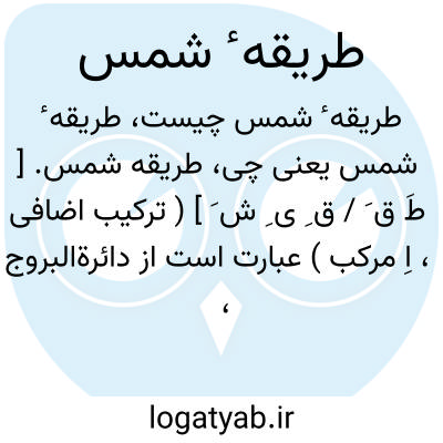 طریقه شمس. [ طَ ق َ / ق ِ ی ِ ش َ ] ( ترکیب اضافی، اِ مرکب ) عبارت است از دائرةالبروج، چنانچه در ضمن لفظ دائره بیان آن گذشت. ( کشاف اصطلاحات الفنون ).