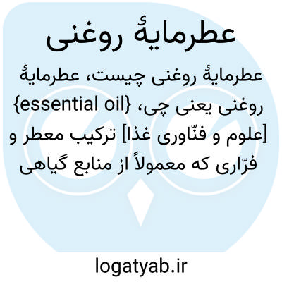 {essential oil} [علوم و فنّاوری غذا] ترکیب معطر و فرّاری که معمولاً از منابع گیاهی استخراج می شود و در روغن محلول است