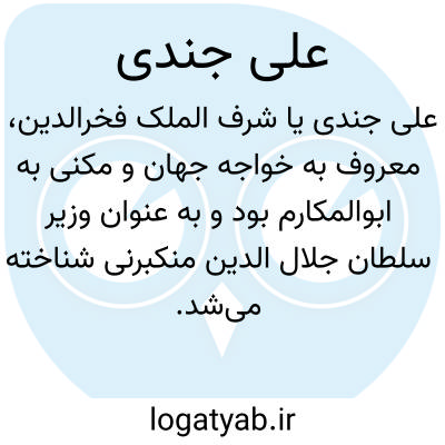 علی جندی. [ ع َ ی ِ ج َ ] ( اِخ ) ابن شرف الملک فخرالدین علی بن ابی القاسم جندی، معروف به خواجه جهان و مکنّی به ابوالمکارم. وزیر سلطان جلال الدین منکبرنی. وی در زمان سلطنت محمد خوارزمشاه به امور دیوانی اشتغال داشت و بواسطه ظلم و تعدی بسیار، سلطان محمد فرمان به قتل او داد. اما شرف الملک پنهان گشت. و هنگامی که سلطان جلال الدین منکبرنی از مغولان شکست خورد و از سند عبور کرد، وی به خدمت سلطان درآمد. و پس از بازگشت جلال الدین از هندوستان وزارت او را به عهده گرفت. چند سالی بعد، پس از حمله تاتار به سلطان جلال الدین در دشت موغان ( مغان ) و گریز سلطان، شرف الملک که به «اران » متواری شده بود عصیان کرد و با ملوک اطراف آغاز مکاتبت نمود. سلطان چون به لشکرگاه بازگردید نامه ها به امرای اطراف فرستاد و شرف الملک را به قصد تحقیر «بلدجن » نامید، و این لقب او به روزگار گمنامی بوده است. اماپس از مدتی که سلطان به اران رفت و به قلعه «حیزان » رسید، از عصیان او تغافل کرد و او را نزد خود خواند. و شرف الملک کفن در گردن به خدمت رفت. و پس از مدتی به «جاربَرد» از مضافات اران رسیدند، و سلطان به قلعه رفت تا وضع آنجا را ببیند و شرف الملک را نیز با خود برد. و والی قلعه را که ترکی ستمکار بود گفته بود که چون فرود آید، شرف الملک را نگه دارد و حبس کند و بند نهد. و قصد او آن بود که شرف الملک در حبس بماند تا تاتار بگریزند و بعد او را بیرون آورد و با شرایطی چند وزارت دهد. اما پس از چندی پنج تن سلاحدار فرستاد که سر او را ببرند و بیاورند و چنین کردند. وی مردی نازکدل و بخشنده و کریم بود، و اگرچه از تحصیل فضایل و اکتساب کمالات بهره نداشت، اما در حل وعقد و رتق وفتق امور دیوانی ید بیضا می نمود. اما چون کار او بالا گرفت به رنجانیدن اطرافیان و ایذاء آنها پرداخت چنانکه نزد سلطان از او غیبت می کردند. مال در نظر وی ناچیز بود. علما و پارسایان را محترم می داشت. وظایف را بسیار کرد و از این راه اموال دیوان از میان برفت. مستمری های وی از عطایای محمود غزنوی و بازماندگان وی و آل سلجوق نیز بیشتر بوده است. علامت شرف الملک بر فرمانهای سلطانی «الحمدﷲ العظیم » بود و بر توقیعات دیوان که طره ( علامت و مارک ) آن «الدیوان الاعلی » نوشته می گشت، «یعتمد ذلک » بوده است. اما بر منشورهای خود که به بلاد خاصه خود میفرستاد و طغرای «ابوالمکارم علی بن ابی القاسم خالصة امیرالمومنین » داشت، «اعتمادکنید» بود. و نشانه وی بر رسیدها «صحیح ذلک » بوده است. ( از سیره جلال الدین ) ( حبیب السیر چ خیام ج 2 ص 664و چ تهران ج 2 ص 433 ) ( دستورالوزراء خوندمیر ص 234 ).