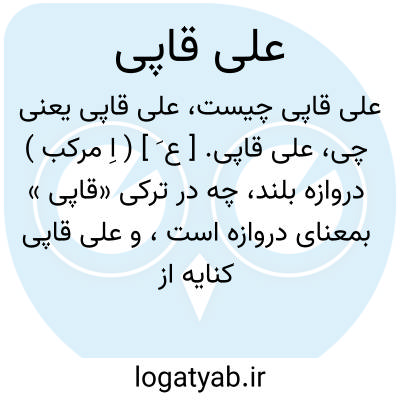 علی قاپی. [ ع َ ] ( اِ مرکب ) دروازه بلند، چه در ترکی «قاپی » بمعنای دروازه است، و علی قاپی کنایه از دروازه ملوک و سلاطین است. ( از آنندراج ). و رجوع به اصفهان و به عالی قاپو شود.